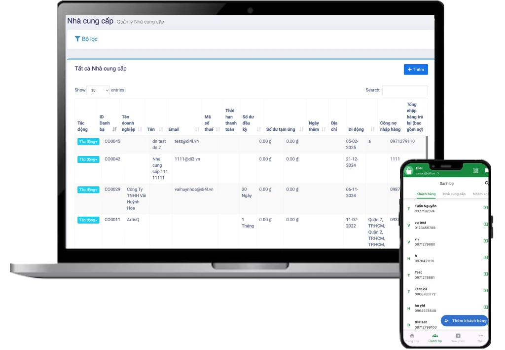 Thông tin các nhà cung cấp, dư nợ và thời gian thanh toán.