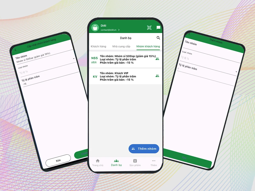 Cho phép thêm khách hàng vào nhóm bán hàng và thiết lập thông số giá bán, chế độ chiết khấu được hưởng sau khi bán sản phẩm thành công.