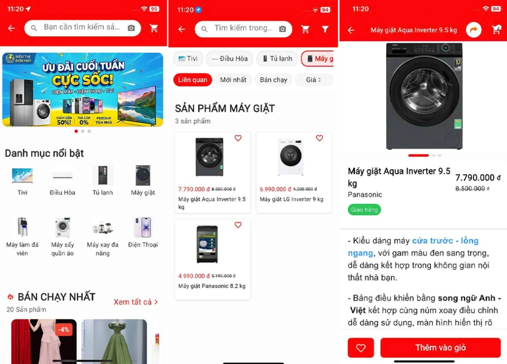 Bộ lọc nâng cao: giá cả, đánh giá, thời gian giao hàng, khuyến mãi.