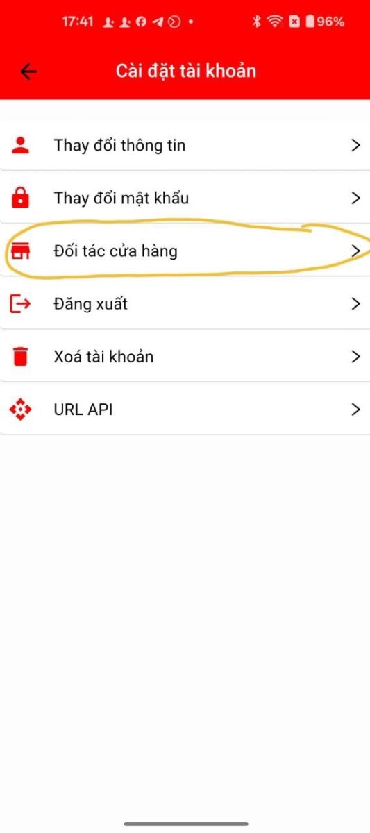 Vào Tài khoản -> Thiết lập -> Cài đặt tài khoản -> Đối tác cửa hàng: